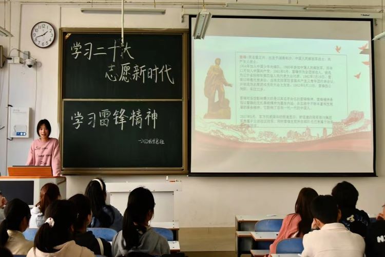 在活动过程中,各班团支书通过PPT进行了团课宣讲,让同学们了解雷锋甘于奉献、为人民服务的优秀事迹,帮助同学们进一步体会“奉献、友爱、互助、进步”的志愿服务精神。随后,各班团支书组织班级同学一起观看“我们身边的雷锋”影片。在观影结束后,团支书询问同学们团课感悟,同学们积极表现,争相发言,交流自己对雷锋精神的认识,分享自己生活中遇到的“雷锋”,并且明确表示将会把雷锋精神铭记心中,更会把雷锋精神实践在自己的生活中。