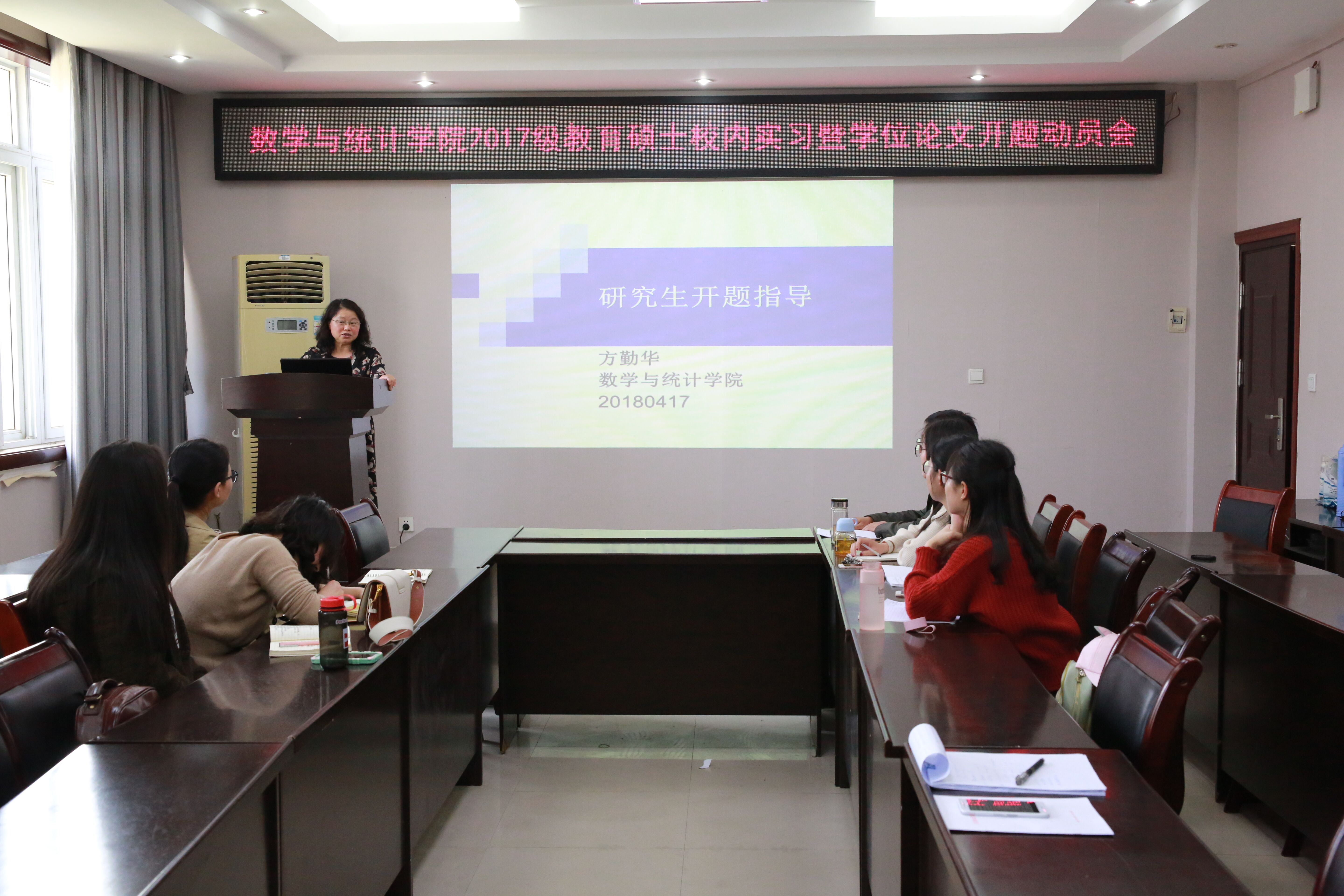 动员会中,方勤华教授就教育硕士论文开题中论文如何选题,如何做文献综述以及如何撰写开题报告等三个方面进行了全面细致的讲解,指出论文在开题中经常出现的一些共性问题。并勉励同学们在完成学位论文过程中,培养严谨、务实的科学方法和刻苦钻研的科学态度,为系统、深入撰写学位论文打下良好的基础。郑重老师就本年度2017级教育硕士校内实习中教育见习、微格训练和讲课大赛等相关工作做了具体安排。