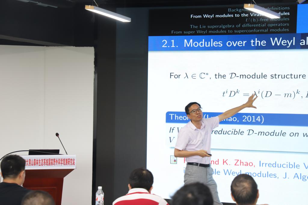 广州大学的郭向前做了题目为《New representations of Virasoro algebra》的报告。