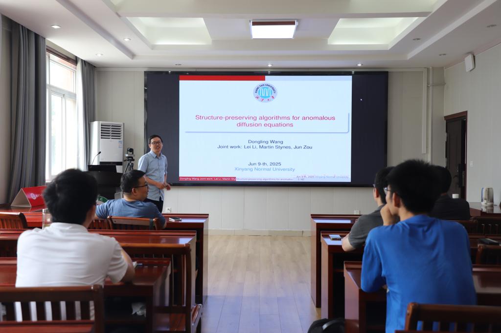 6月9日上午,应威尼斯9499登录入口邀请,威尼斯9499登录入口王冬岭教授作了题为《反常扩散方程的保结构算法》的学术报告。报告会由李世顺教授主持,部分老师及研究生聆听了此次报告。