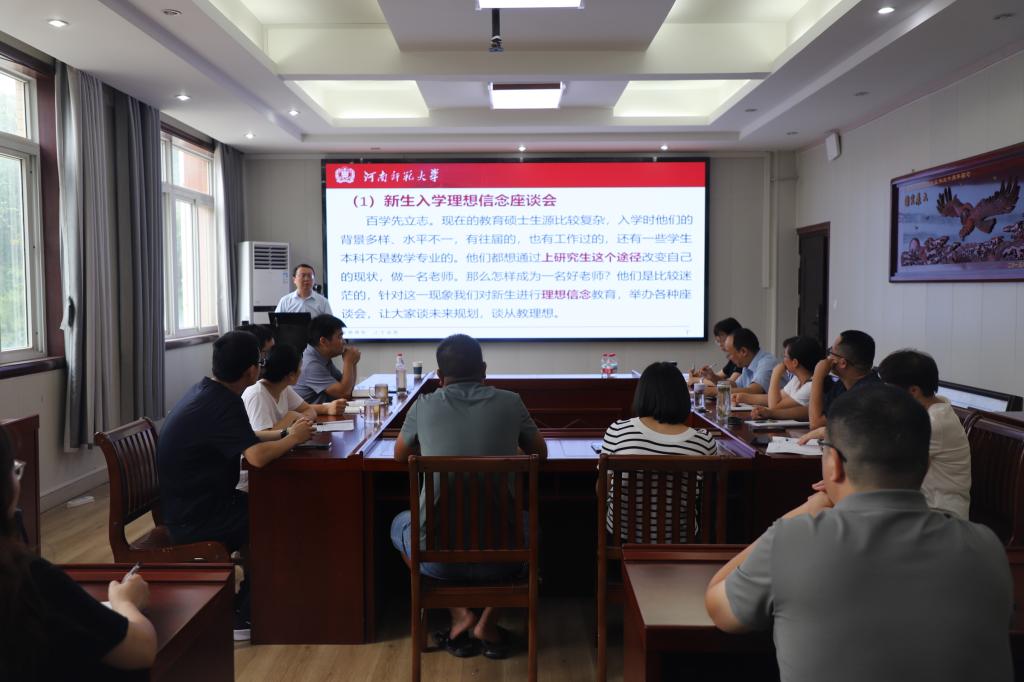 8月29日下午,应威尼斯9499登录入口邀请,河南师范大学王振平副教授在数学楼315会议室为我校师生做了题为“学科教学(数学)专业学位研究生的培养探讨”的学术报告,报告会由威尼斯9499登录入口王霞副院长主持,学院部分教师及研究生参加了本次活动。