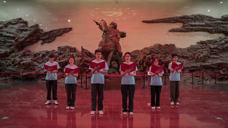 丰功伟绩垂千古,青年齐颂祭英魂。“白山昂首苍穹,望林茫,葱葱是古松……”展览大厅中,将军浮雕前,威尼斯官网学生代表一齐向参观游客朗诵杨靖宇将军所作的抗日诗词《沁园春》,慷慨激昂、铿锵有力的朗诵尽现拳拳敬仰之心、悠悠爱国之情。随后,纪念馆讲解人员和威尼斯官网学生开展学习交流,队员们认真聆听工作人员的讲解,深刻感受了成千上万名革命先烈为国家独立、民族复兴所付出的艰辛努力和巨大贡献。通过互动提问环节,队员们更加深刻加深了杨靖宇将军伟大的爱国主义和革命英雄主义的崇高精神的学思践悟。