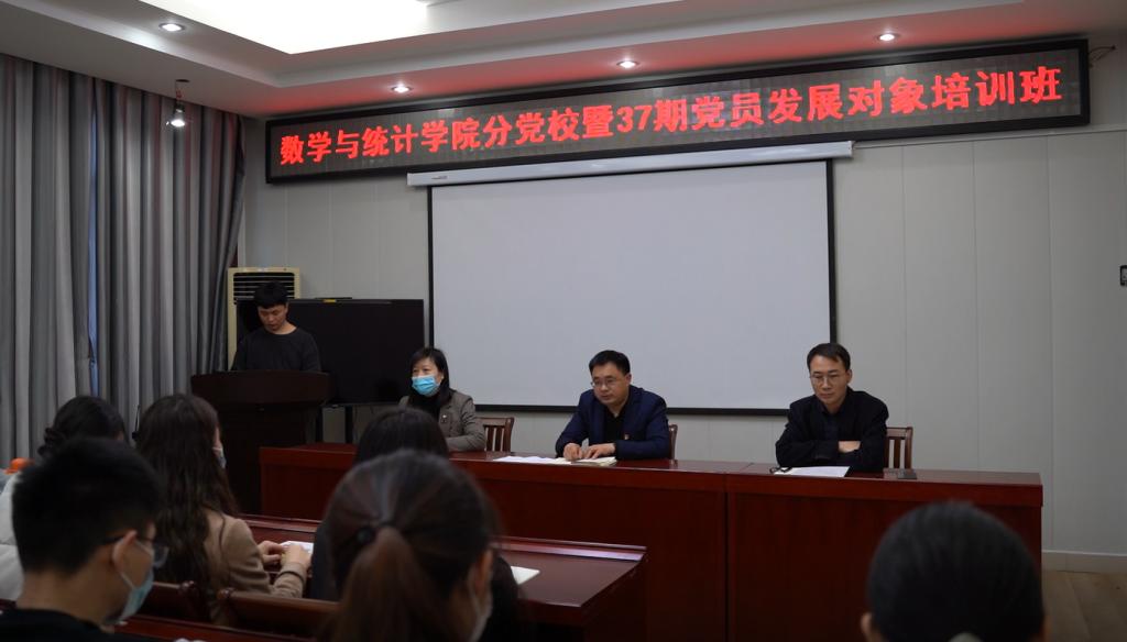 4月13日,威尼斯9499登录入口在数学楼315会议室举行分党校暨37期党员发展对象培训班开班仪式。学院党委书记洪亮、副书记刘丰铭、专职组织员谢艳丽老师和58名本期党员发展对象参加会议。会议由党委副书记刘丰铭主持。