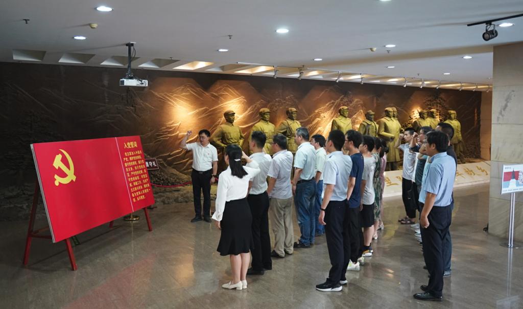 参观展馆汲“动力”。学院组织师生党员参观纪念馆,汲取前行动力。6月30日,学院党委组织各支部书记和教师党员代表参观鄂豫皖纪念馆。同志们认真观看陈列的老一辈革命者的珍贵遗物,了解鄂豫皖革命根据地的形成、发展、壮大的过程,感受先烈们前仆后继的革命精神和顽强的英雄气概。党委书记洪亮带领大家重温入党誓词,牢记入党时的庄严承诺和奋斗追求,永葆共产党员的政治本色。同时,研究生党支部、学生第二党支部和学生社团党支部组学生党员在参观当地红色纪念馆,并开展线上交流活动。线上线下、师生同步,缅怀革命先烈,弘扬爱国精神。