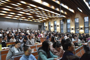 为认真贯彻落实新时代全国高等学校本科教育工作会议精神,对标刚刚结束的学校本科教学工作会议要求,提升英语双学位/双专业本科生的学习能力和学习水平,帮助学生做好即将开始的下学期英语双学位/双专业的选课工作,在学校教务处统一领导和支持下,pp电子游戏官网于12月5日下午4:30在东校园逸夫楼第一阶梯教室组织召开了全校英语双学位/双专业学生培养方案宣讲会。此次宣讲会共有来自国际商学院、国际新闻与传播学院、国际关系学院、中国语言文学学院、信息科学技术学院、法学院等六个学院的300多名学生参加。pp电子游戏官网常务副院长蔡鸿、副院长仵胜奇,院长助理廖鸿婧及学院教学办公室的庄双和窦茹苑老师参加了本次宣讲会。此次会议由学院办公室主任匡琳琳老师主持。