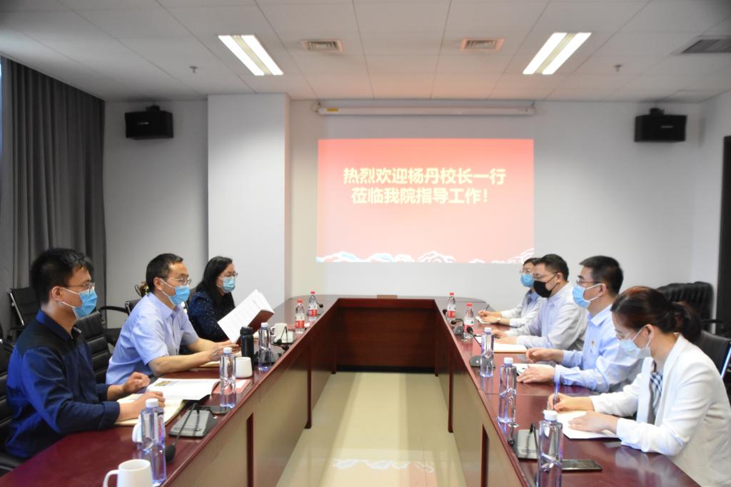 5月20日上午,学校党委副书记、校长杨丹,教务处处长李莉文,党校办陈小龙一行莅临pp电子游戏官网进行调研工作。调研会在pp电子游戏官网1016会议室召开。学院党总支书记兼院长蔡鸿、副院长仵胜奇、教师代表张东英以及办公室相关老师参加了会议。会议由蔡鸿主持。