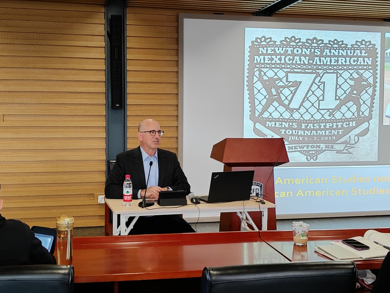 在中美“旧金山愿景”实施一周年即将到来之际,为加强中美人文交流,促进美国文化研究走向深入,10月25日,pp电子游戏平台网站特邀美国堪萨斯大学美国学系主任、美国著名墨西哥裔民族志专家本·查佩尔(Ben Chappell)教授莅临“专英讲堂”,为全校师生做了题为“美国研究中的墨西哥裔美国人研究”的学术讲座。来自pp电子游戏平台网站、英语学院、国际关系学院等兄弟院系师生近60人参加讲座。讲座由pp电子游戏平台网站副院长仵胜奇主持。