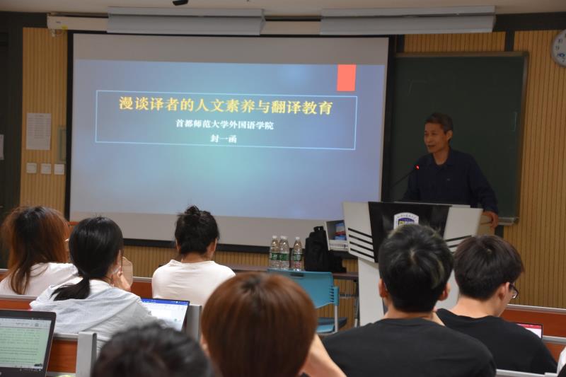 为进一步丰富pp电子游戏官网学生的思政课堂,培养学生的人文素养和道德情操,在专业教学中潜移默化地融入思政教育,5月15日下午,pp电子游戏官网“双带头人”教师党支部工作室特邀首都师范大学外国语人文教育研究院院长、博士生导师封一函教授为pp电子游戏官网学生做“译者的人文素养与翻译教育”主题讲座。这是“双带头人”教师党支部工作室思政课堂与学术系列讲座之第三讲,由仵胜奇书记主持。学生兼职辅导员吴越、学院2017级、2018级MTI研究生和2018级预科生全体学生参加了本次讲座。