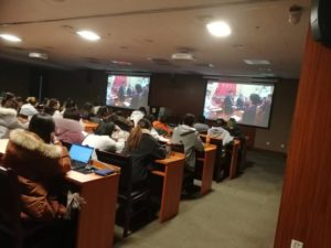 12月20日晚7:00,pp电子游戏平台网站2017级、2018级研究生和2018级预科生在西校区国际大厦317教室集体收看了《庆祝改革开放40周年大会》专题节目录像。这次专题学习是pp电子游戏平台网站学生“思政课堂”建设的一项重要内容。直属党支部书记仵胜奇、辅导员吴越以及2017级、2018级研究生和2018级预科生共计55人参加。专题学习由仵胜奇主持。