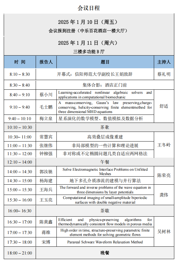 为促进数学学科的发展,由信阳师范大学主办的 “偏微分方程高效数值算法研讨会”将于 2025 年 1 月 10 日-1 月 12 日在河南省信阳市举办,会议旨在围绕求解大规模非线性偏微分方程相关算法的理论和应用,聚焦于并行计算和深度学习等热门主题,开展深入的交流探讨,为高效求解偏微分方程数值解寻找新思路和新途径。本次会议也旨加强与会学者们之间学术交流与合作。