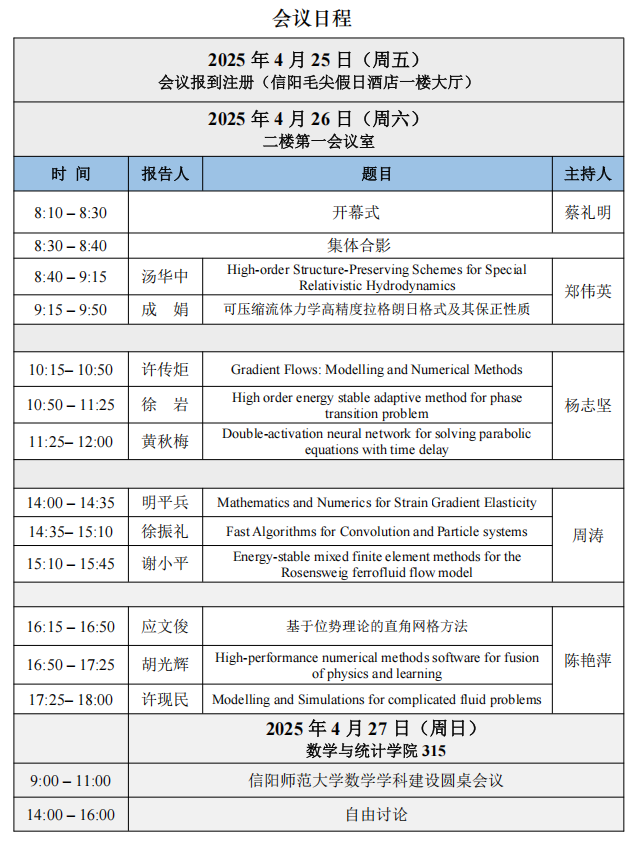 为促进数学学科的发展,由信阳师范大学和中国科学院数学与系统科学研究院共同主办的 “2025计算数学前沿论坛”将于 2025 年 4 月 25 日-4 月 28 日在河南省信阳市举办,本次论坛旨在汇聚计算数学和科学工程计算领域的杰出专家学者,交流相关领域的最新研究成果,结合经典科学计算与先进计算、人工智能等热门主题,开展广泛深入的交流探讨,加强合作研究。