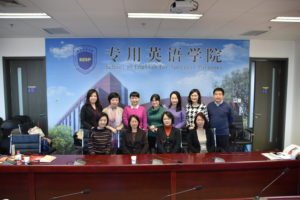 12月11日下午2:00,天津外国语大学基础课教学部主任张钡、基础教学部大学英语教研室主任李春侠等一行5人前来pp电子游戏官网调研。会议在北外大厦1016会议室举行, 常务副院长蔡鸿,院长助理廖鸿婧、学院教研室主任、课型组长及教师代表叶如帆、蒋岳春、杨华、王红欣、文圣参加了调研座谈会,会议由廖鸿婧主持。